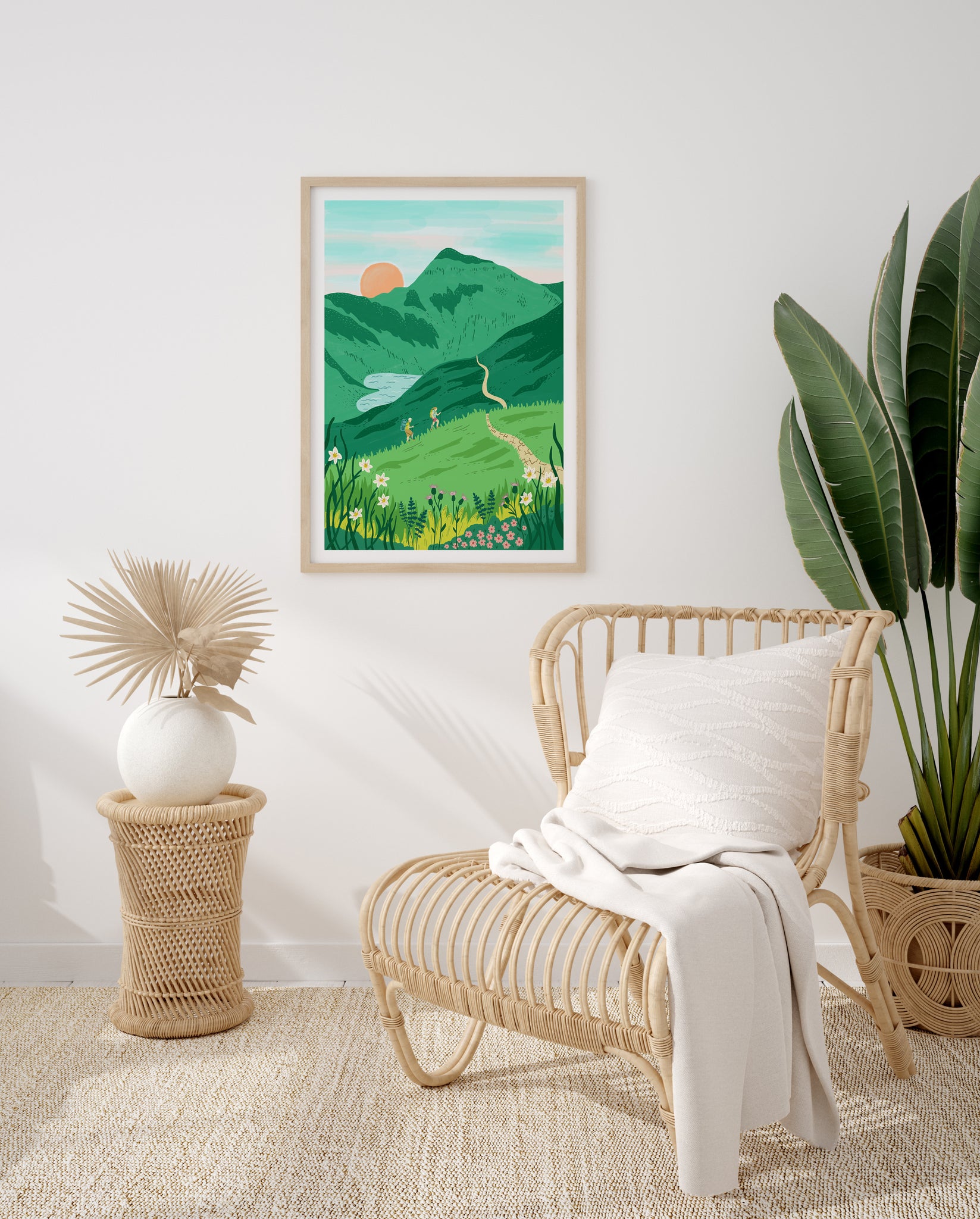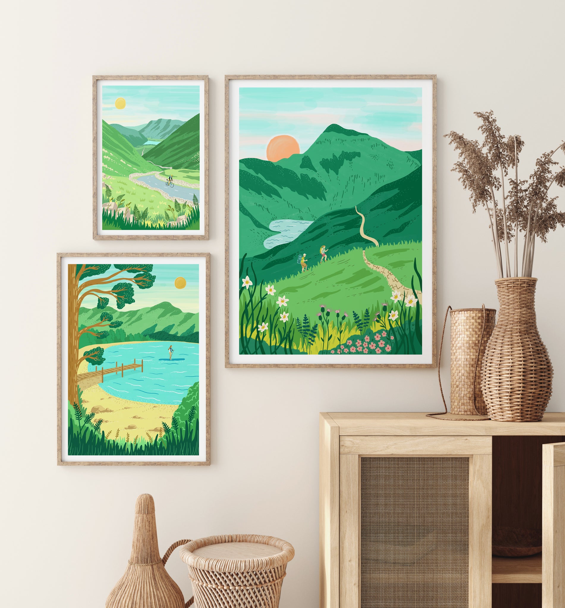 Like so many of us I enjoy spending time in the outdoors hiking and exploring. This past year I have come to discover the beauty that is on our doorstep in the UK. This inspired my new collection of art prints focusing on the many outdoor pursuits we all love doing here in the UK and afar. These are a playful and colourful and fun take on some of my favourite spots around the UK.