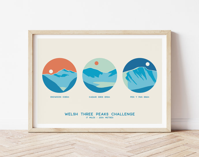 Welsh Three Peaks Challenge poster, Snowdon, Cadair Idris, Pen y Fan