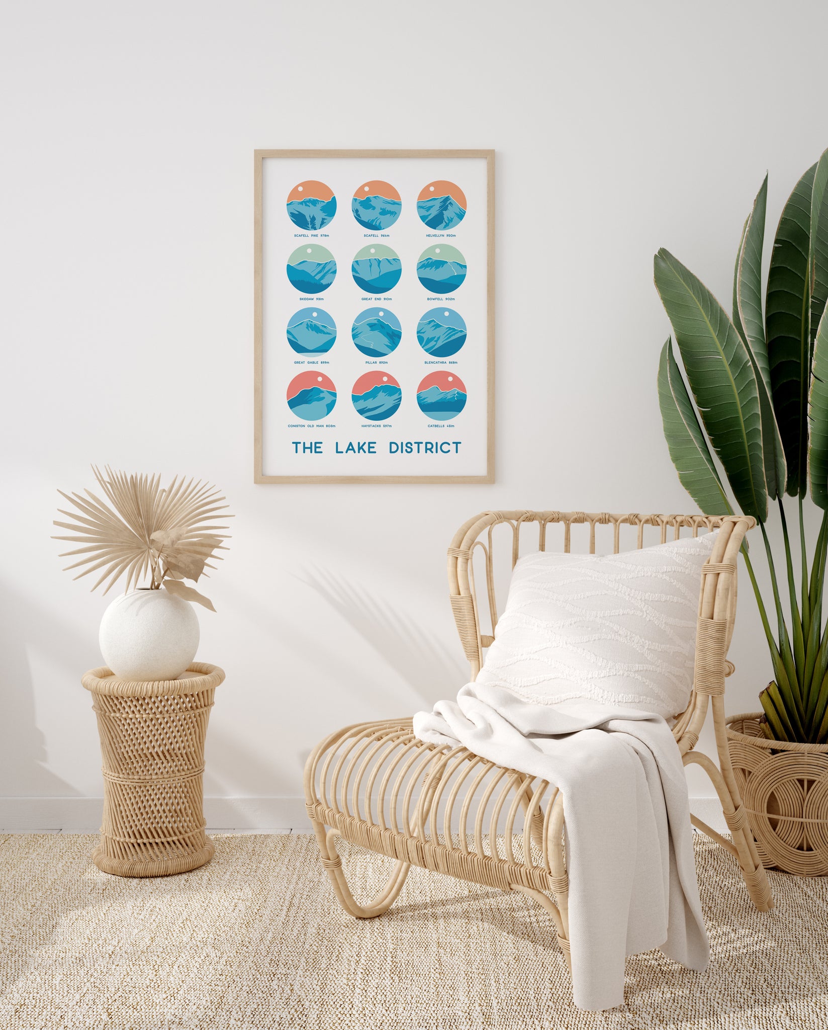 The Lake District Mountains poster, featuring popular peaks in the area.