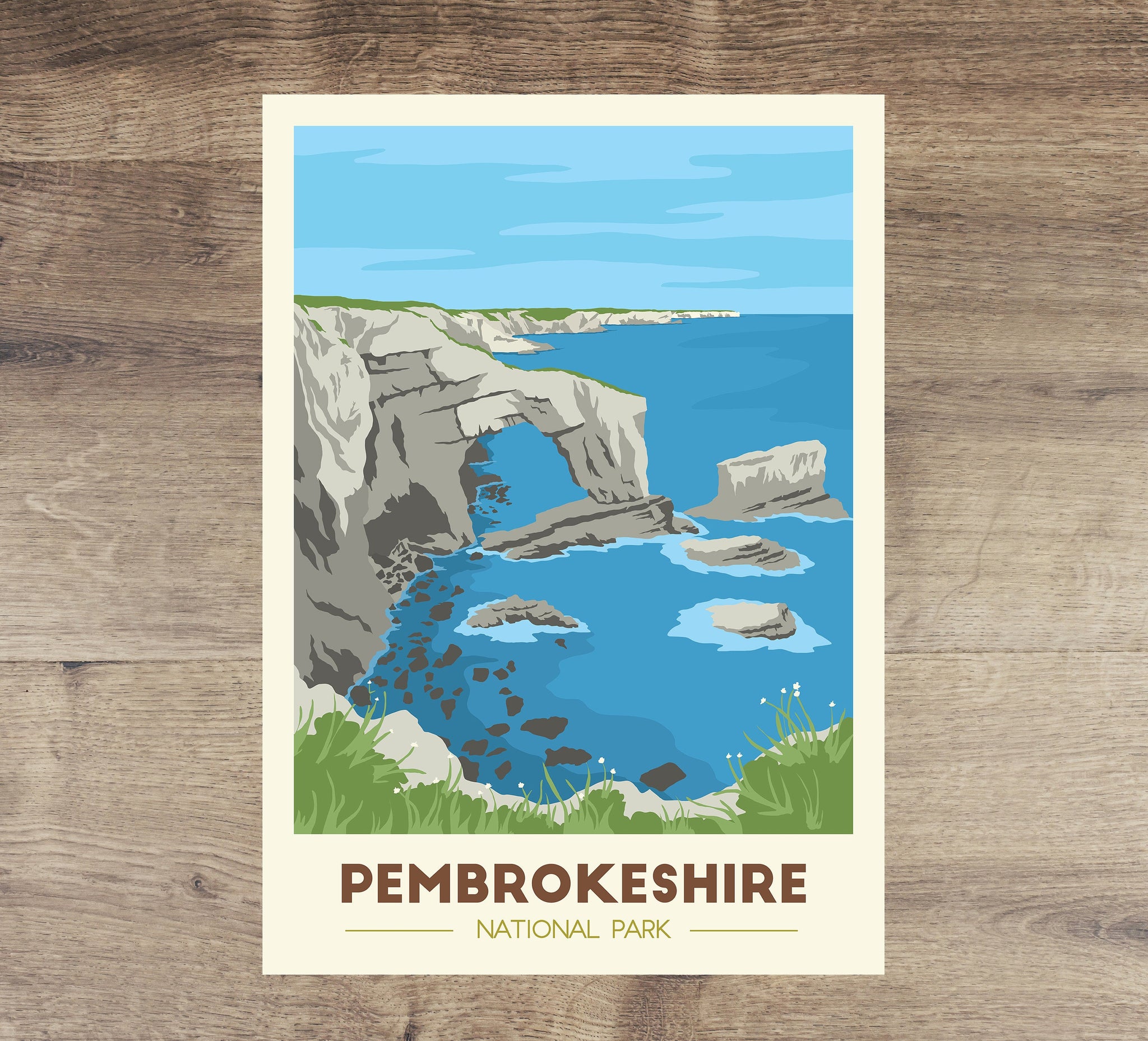 Pembrokeshire Coast National Park print, Wales, Green Bridge of Wales